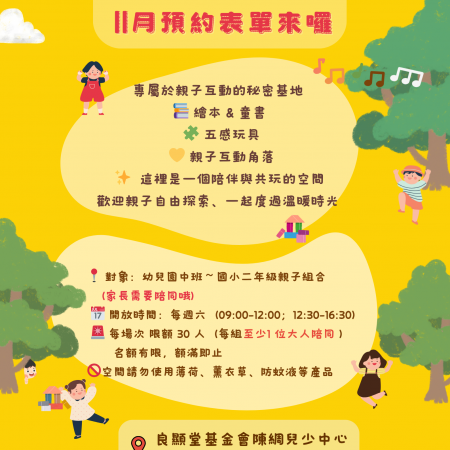 lstpuli2025-10-31 17:14:522025-11-13 17:54:08良顯堂基金會《親子共融空間》11月預約表 🎉
