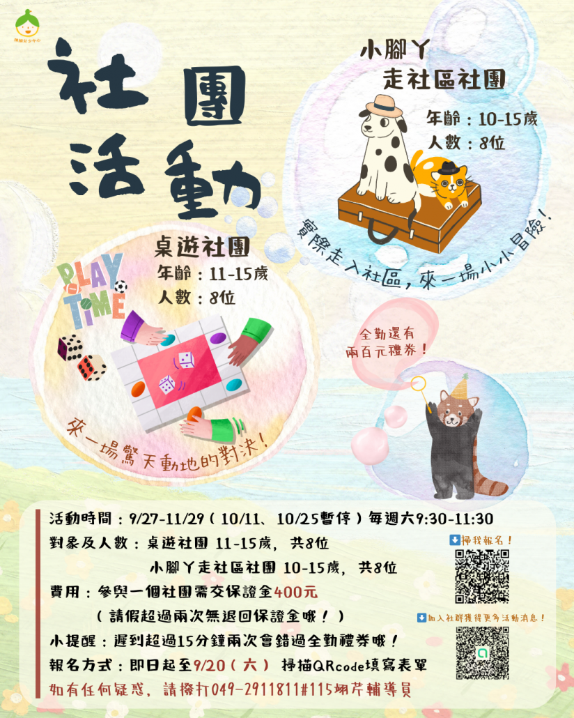 💰 費用說明:每社團保證金 400 元,中低收/清寒家庭保證金200 元